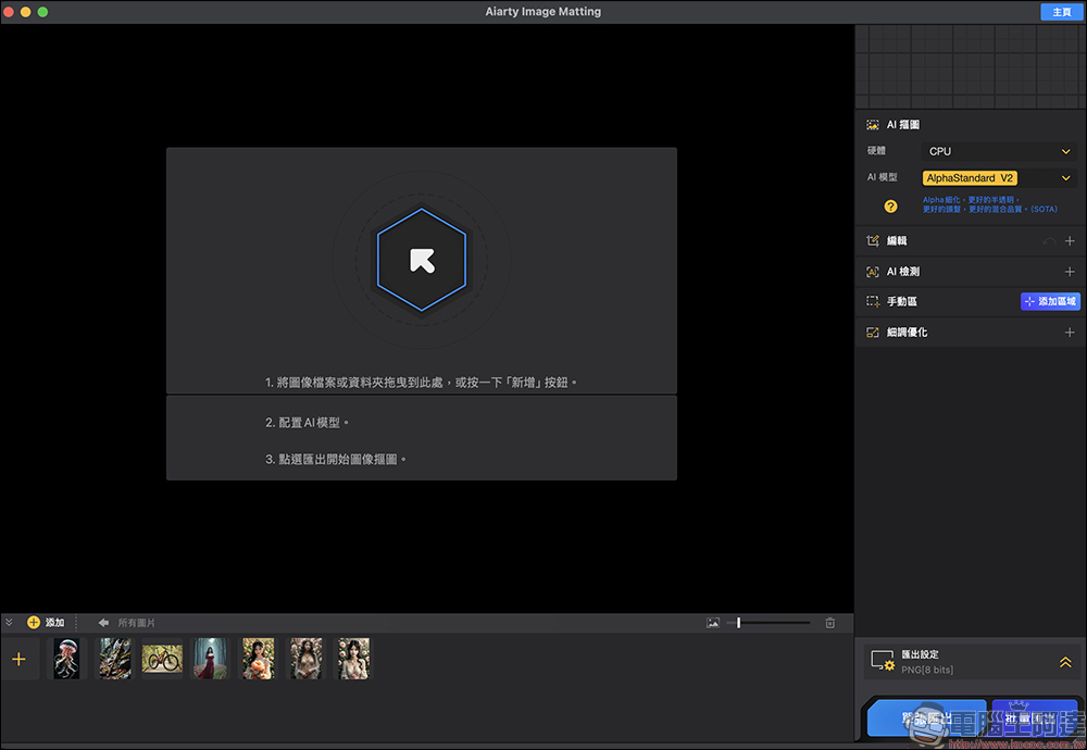 接着跟大家快速「复习」一下《Aiarty Image Matting》该如何使用吧! 首先,上传一张想要去背的图片到《Aiarty Image Matting》,也能将图片直接拖曳到窗口上。