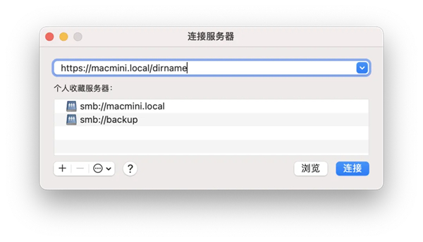 打开本机或其他局域网 Mac 的访达,按 Command+k 连接服务器,dirname 为 httpd-dav.conf 中定义的 Alias 路径