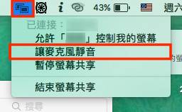 如果不想让对方听到你的声音,可以在菜单列的地方点开屏幕共享的图标,将「让麦克风静音」的选项打开即可。