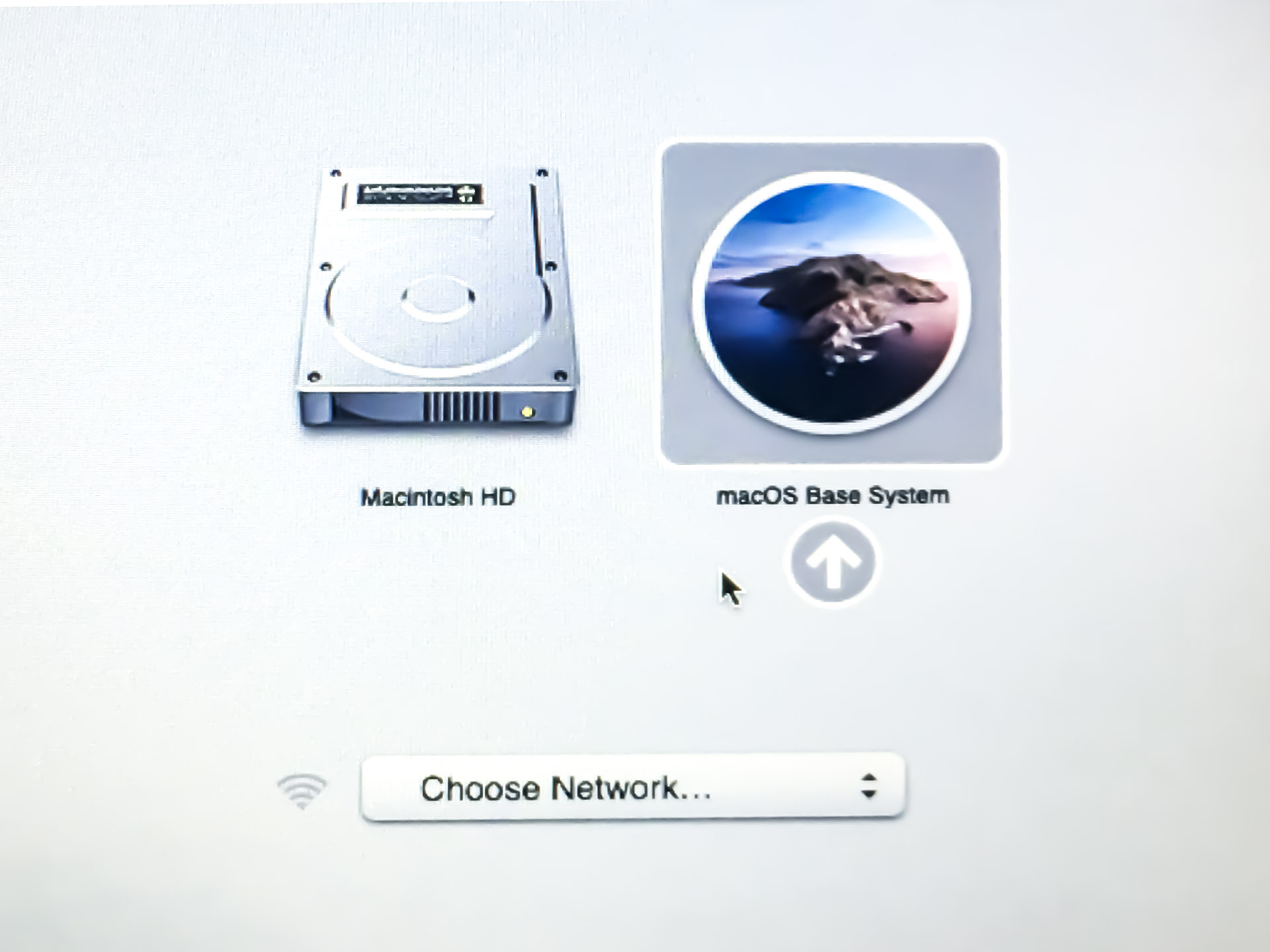 ▲重新开机,按住Option,进入开机画面,选择U盘的macOS Base System来安装Catalina