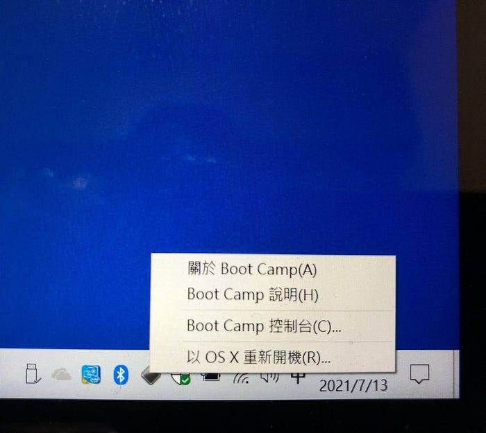 5. 重新回到 Windows 10 ,在右下角有看见 Bootcamp 软件表示安装完成! 就可以开始使用网络、蓝牙或其他功能了