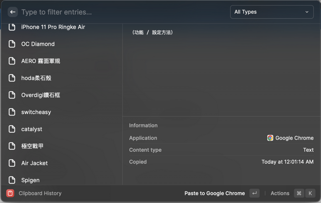 我是直接把它设置成取代 spotlight,因为单位换算&剪贴板的历史纪录太方便了! 而且不只纪录文字的复制,连图片的复制都可以查询。 还有很多其他可加装的功能,相见恨晚。