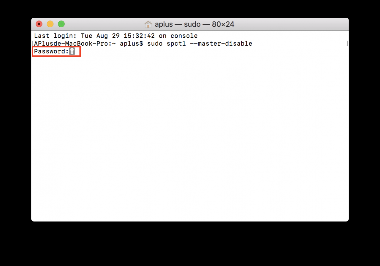 打开终端机后,在终端机中输入sudo spctl –master-disable这段指令并按下 Return(Enter)。