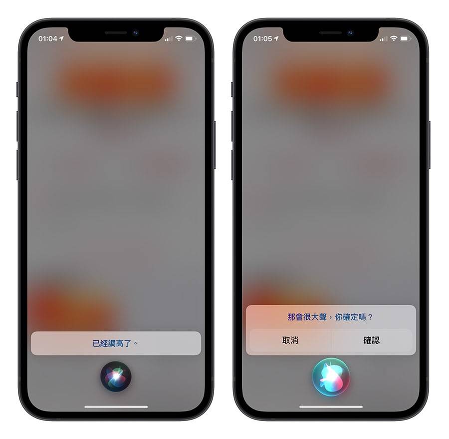 只要说「嘿 Siri」,然后下达「降低音量」之类的指令,就能利用 Siri 调整音量了,如果你跟 Siri 说要把音量调大最大,他还会贴心的提醒你要小心喔。