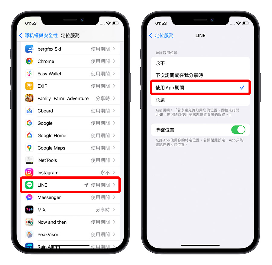 许多 App 都需要搭配定位功能才会好用,但有些对你而言根本就不需要定位功能,所以你可以把 App 的定位关闭,或是设置为「使用期间才会存取」,这样就可以让 iPhone 比较不那么耗电。
