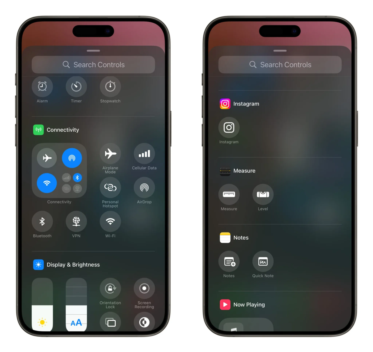 iOS 18.1 在控制中心里也把「连线」中的所有功能以及「测距仪」独立成一个单独的按钮,让你可以进一步依照使用习惯客製化控制中心。