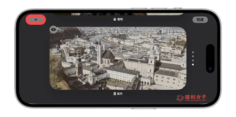 长按 iPhone 待机画面后就能进入模式,我们点选左上角「+」。