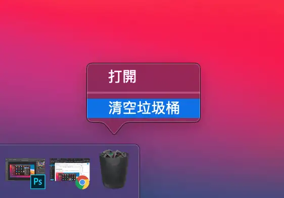 还有一步关键的动作,在「垃圾桶」上按一下右键,选择「清空垃圾桶」,这样就能彻底删除应用程式。