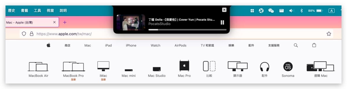 如果是没有刘海的 Mac 机型,MediaMate 也有提供类似于 iOS 通知泡泡的形式,点击还能展开专辑封面与控制项目。